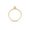 Deze 14k geelgouden ring met ronde lab-diamond in chaton-zetting straalt klassieke elegantie uit, perfect ook als aanzoeksring.