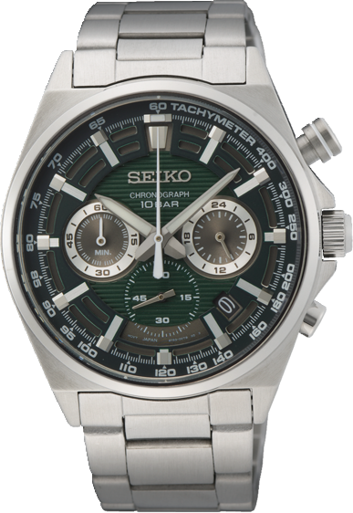 Dit veelzijdige Seiko SSB405P1 chronograaf herenhorloge is van alle markten thuis. Het is voorzien van een stopwatch, tachymeter, een New Link removal system bracelet en een 24-uurwijzer. Het heeft een stoere, robuuste uitstaling. Het horloge is voorzien van een Seiko 8T63 kaliber met datumweergave. Het Seiko Quartz horloge is zeer accuraat en voorzien van een milieuvriendelijke kwikvrije batterij. De zilverkleurige stalen kast heeft een diameter van 41 mm en een hoogte van 13 mm. Ook de achterzijde is van staal en voorzien van een schroefdeksel. De mooie groene wijzerplaat is voorzien van lichtgevende wijzers en index. De betrouwbare stalen band met vouwsluiting met drukker zorgt ervoor dat je niet bang hoeft te zijn om je horloge te verliezen. Waterdicht tot 100 meter.