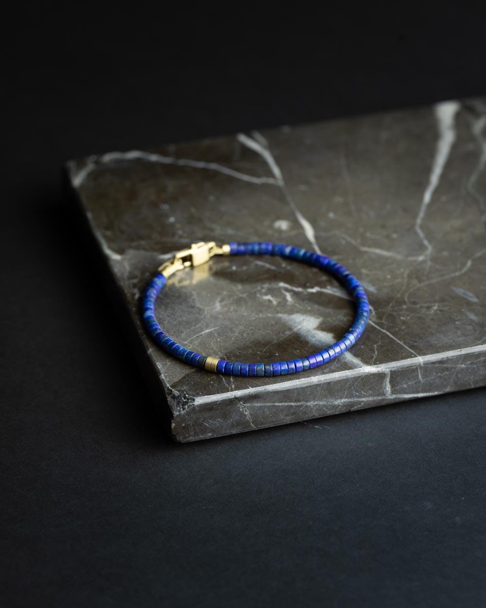 De Sphera Mat Blue armband is gemaakt met elegante 2mm ronde Lapis Lazuli stenen en afgewerkt met een titanium element. Deze armband is verfijnd en classy en past perfect bij andere accessoires of horloges. De natuursteen Lapis Lazuli wordt ook wel Steen der Wijsheid genoemd en komt vooral voor in Afghanistan. Het maakt het hoofd makkelijker leeg, heeft een positieve invloed op de mindset en stimuleert de band met andere mensen.