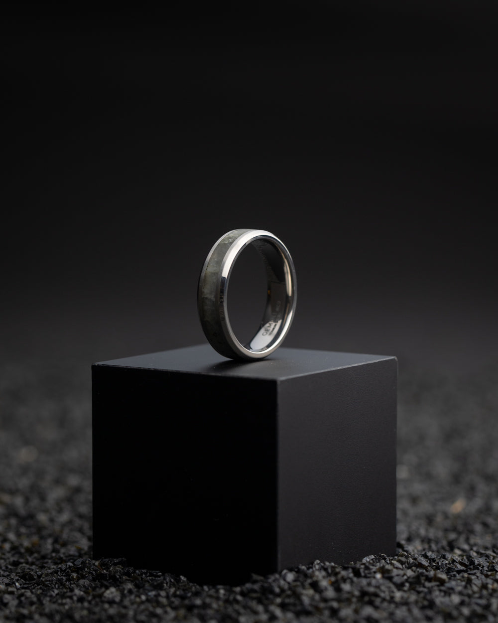 Deze Rota Light Grey ring is gemaakt met titanium en grijze Larvikite steen uit Noorwegen. Deze steen is ideaal om je te beschermen tegen slechte invloeden en om dingen vanuit een hoger perspectief te benaderen.