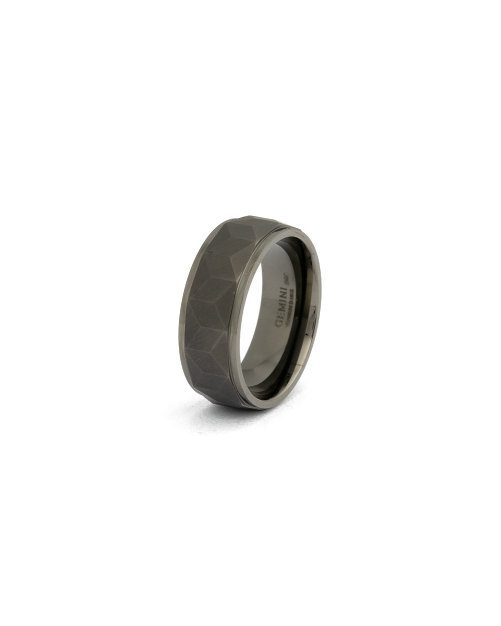 De naam 'Timor' is afgeleid van het Latijn en betekent 'een object dat angst inboezemt'. Dit is een verwijzing naar de ruwe, gefacetteerde afwerking aan de buitenkant van deze titanium ring. Deze ring is verkrijgbaar in de EU maten 54 t/m 66.