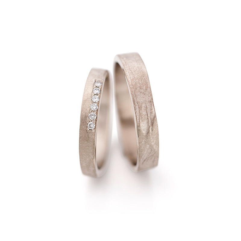 Niets is zo mooi als het vieren van je liefde met tijdloze, handgemaakte trouwringen. De organische trouwringen van Ines Bouwen tonen een liefde die een leven lang meegaat. Deze speciale trouwringen, ontworpen door de Antwerpse kunstenaar, zijn elk geïnspireerd door de natuur, architectuur, mode en mensen. De handgemaakte trouwringen, geproduceerd in de diamantwijk, zijn allemaal verkrijgbaar in gerecycleerd wit goud, champagne, rosé en geel goud. Ze worden gecombineerd met de fijnst geslepen diamanten. Onze originele trouwringen zijn verkrijgbaar als set, maar kunnen ook apart besteld worden.